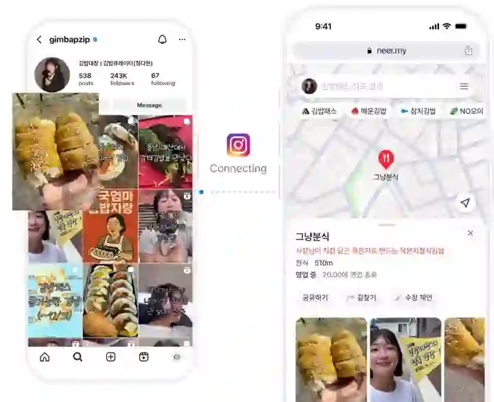 일일이 입력하지 마세요. 인스타그램 계정만 연결하면 피드 속 장소와 콘텐츠가 자동으로 지도에 등록됩니다.
